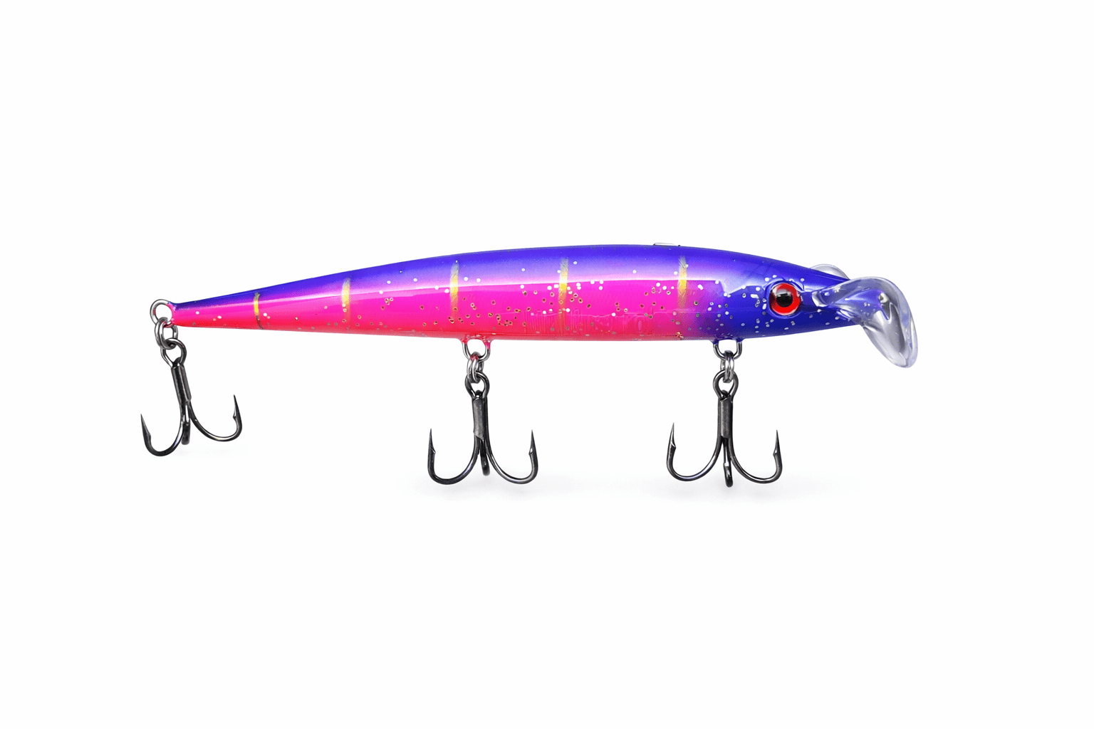 Воблер мы изготовили из высококачественного ABC пластика, а тройники закрепили на цельной проволоке из нержавеющей стали, проходящей через весь корпус. Рыба не сможет вырвать крепление даже при экстремальной нагрузке.