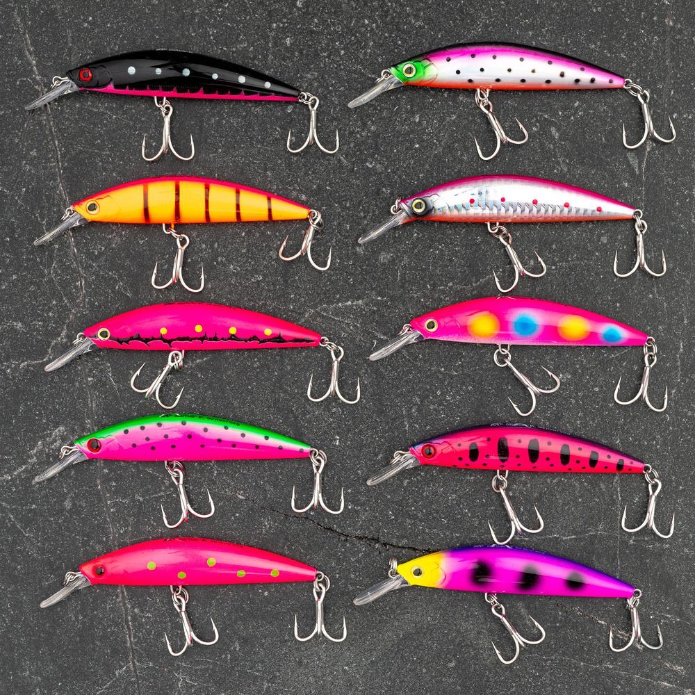 Светятся в ультрафиолете. Воблер обладает отличными кастинговыми показателями, быстро заглубляется. Данный воблер создан для ловли на сильном течении. С ним можно охотиться на лососей, щук и судаков, прочесывая песчаные свалы и бровки. Движения воблера имитируют поведение раненой рыбёшки. Так как плавучесть отрицательная, во время паузы воблер погружается ниже. Это станет важным качеством для того чтобы спровоцировать хищника на атаку. Данный воблер показывает отличные результаты при проводке с активным твичингом.