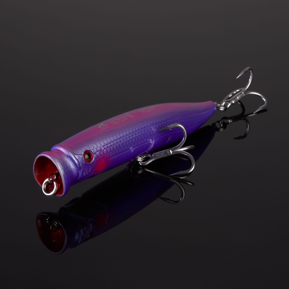Размер и форма разработаны таким образом, чтобы обеспечить максимальный контроль при плавании с минимальными усилиями со стороны рыболова и обеспечить чрезвычайно дальний заброс. Наш поппер отлично плавает как при медленном вываживании, оставляя за собой длинные пузырьки, так и при более сильном вываживании с мощными рывками, создающими большие и громкие всплески воды.