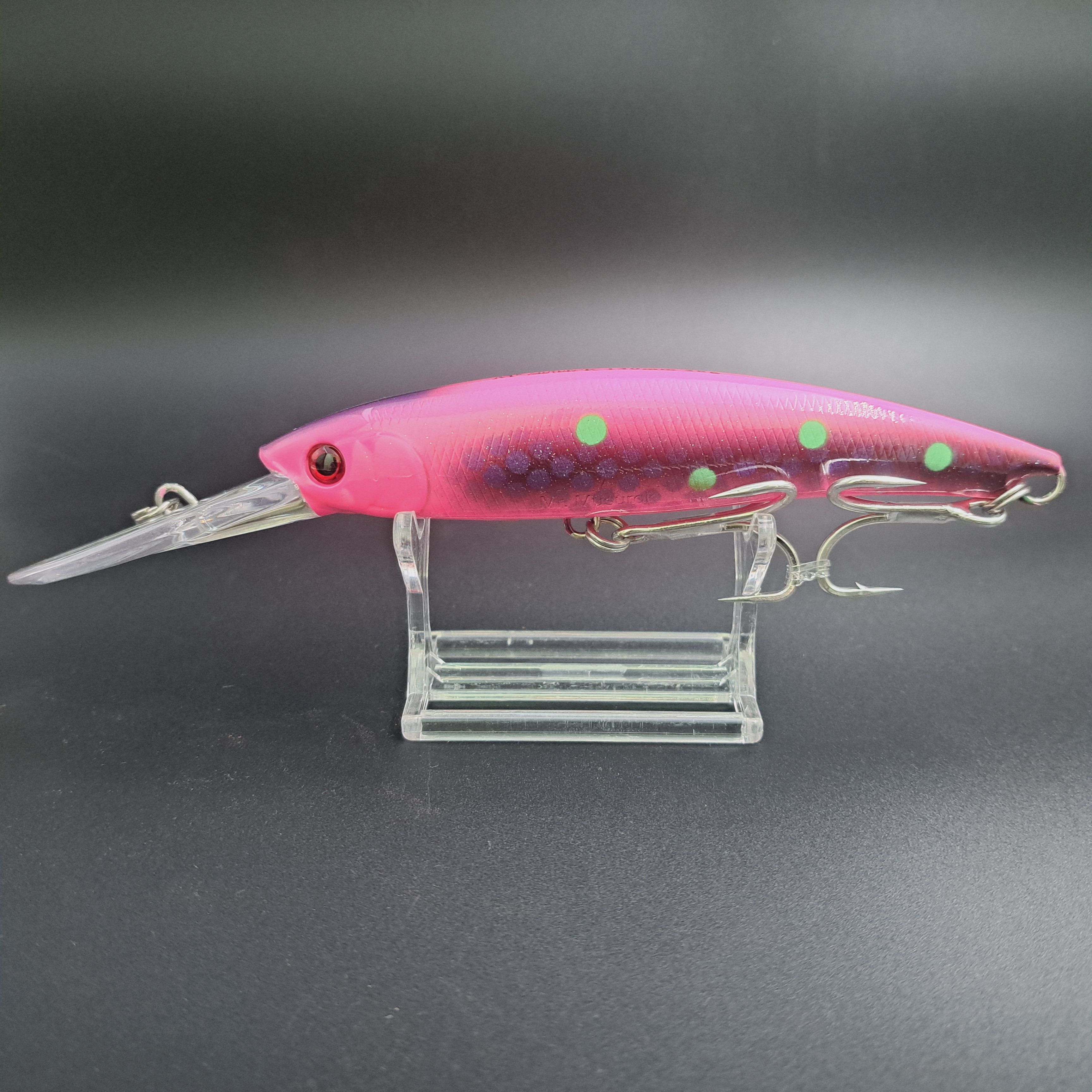 Данный воблер мы сделали шумовым, что в купе с объёмным габаритным телом, вызывающим значительные волновые возмущения, привлекает рыбу даже на значительной дистанции. Приманка уверено работает в подсечке, надежно насаживает крупноразмерного хищника и удерживает его до завершения вываживания. Риск сходов и потери работоспособности при зацепе минимален.