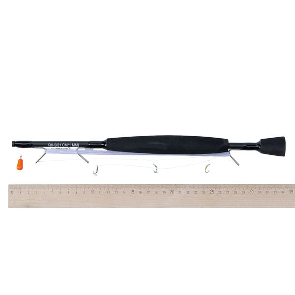 Удилище RX-5 оснащённое гирляндой из 3-х мелких блёсен с зазубриной